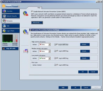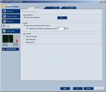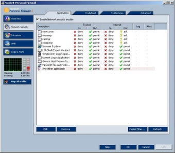 Sunbelt Kerio está diseñado para proteger tu sistema tanto de otros ordenadores conectados en red local, como de ataques procedentes de sistemas remotos, controlando el tráfico de datos de entrada y salida y bloqueando todos aquellos intentos de acceso o de comunicación que el usuario no permita.